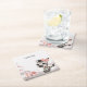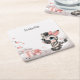 Cute baby shower or birthday paper coaster featuring adorable little female zebra wearing a cute pink bow with some love hearts