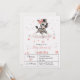 Cute girl baby shower invitation featuring adorable little female zebra wearing a cute pink bow with some love hearts