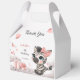 Cute girl baby shower favor box featuring adorable little female zebra wearing a cute pink bow with some love hearts