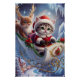 Adorable Maine Coon Santa Claus Kitten in Enchanted Christmas Sleigh - Holiday Wall Art Poster