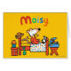 Having just arrived at her hotel room, Maisy sits happily on her colourful, polka-dot bedspread. This Lucy Cousins illustration from "Maisy Goes on Vacation," published by Candlewick Press, also shows Maisy's stuffed panda, her sun hat, and her shovel. Children will love this image of the familiar mouse getting ready to go to the beach.
