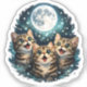 Adorable Meowing Kittens & Full Moon Sticker