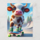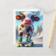 Adorable Mini Brown and White Cow Skateboarding Postcard