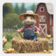 Adorable Mouse Farmer on Hay Sticker