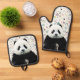 Adorable Panda Bear Animal Name Pretty Pattern Oven Mitt & Pot Holder Set