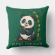 Adorable Panda Hugging Bamboo Cute Cartoon Green Cushion