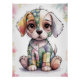 Adorable Patchwork Puppy with Big Eyes - Whimsical Poster