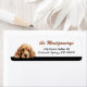 The left side of these return address labels features an adorable buff coloured Cocker Spaniel dog peeking over a ledge. Your custom text is in cinnamon brown and black at the right. Everything is placed on a white background.