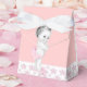 Sweet baby girl pink baby shower favour boxes. You can add text, change the bow colour and add a background colour of your choice to this cute pink princess baby shower favour box. You can add text and change the background colour on this adorable pink baby shower favour box.