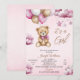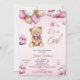 Adorable Pink Balloons Teddy Girl Baby Shower Invitation