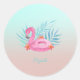 Adorable Pink Flamingo Palm Leaves Classic Round Sticker