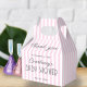 Celebrate the arrival of your little one with this adorable pink-striped baby shower favour box. Customisable with the baby's name and event date, this charming favour box is perfect for gifting sweet treats, small keepsakes, or party favours to guests. The elegant script font and soft pastel colours make it a delightful addition to any baby shower decor. A thoughtful and stylish way to thank your guests for sharing in your joyous occasion!
