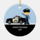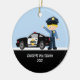 This is a cute Policeman. He is dressed in a blue policeman's uniform. He has blonde hair and has one arm raised. He's standing next to a black police car. The top has a light blue background while the bottom is black with a thin white border. Personalise to make it special! Check out our many other designs! ©scrappindoodles