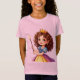 A cute young princess character with luxurious curly hair, attired in a pink gown, and holding a magic wand, set against an inviting and warm background, radiating charm and elegance.