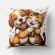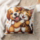 Adorable Puppy and Kitten Hugging with Warm Smiles Cushion