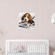 Cute basset hound pup enjoying the snowfall while playing with a stick in the snow. Featuring a heartwarming winter scene complete with snowflakes and a playful expression capturing joy and warmth.