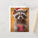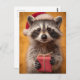 Adorable Raccoon in a Santa Hat Holding a Present Postcard