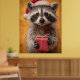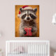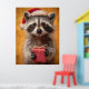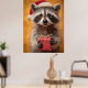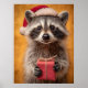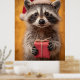 Adorable Raccoon in a Santa Hat Holding a Present Poster