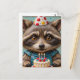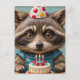 An adorable racoon with a party hat and birthday cake fantasy fairy tale art
