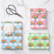 Wrap up those special gifts with an extra sprinkle of cheerfulness! These cute wrapping paper sheets feature a pattern of rainbow graphics with white clouds and pink hearts. One sheet has a blue background, one has a pink background, and one has a green background. It's perfect for surprising the rainbow lover in your life.