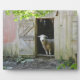 This decorative plaque features a sweet gentle sheep standing in the doorway of his home in Connecticut. Great for animal lovers!