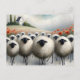 Adorable Sheep Poppy Field and a House Postcard