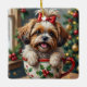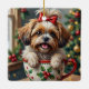 Adorable Shih Tzu Dog in Christmas Mug Cozy Art Ceramic Ornament
