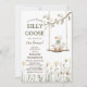 Get ready to welcome a sweet little bundle of joy with these adorable gender-neutral baby shower invitations. Featuring a cute little white goose swinging on a tree swing, these invites exude a playful yet elegant vibe with delicate watercolor wildflowers. Perfect for a bohemian-inspired celebration, this template can easily be customized to your liking. Plus, the soft sage green and brown hues make it suitable for both baby girls and boys. So, don't wait any longer - invite your loved ones to celebrate the arrival of your little silly goose in style!