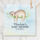 Cute baby shower favour tag featuring the sweetest sloth set on a blue watercolor background.