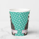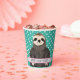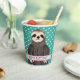 Cute sloth happy birthday paper cups with a pretty patterned background. Customise the background colour as well to make it your very own.