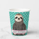 Adorable Sloth Teal Kid's Happy Birthday Animal Paper Cups