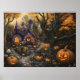 Adorable Spooky House and Halloween Pumpkin Patch Poster