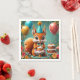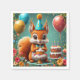 A cute squirrel adorned with a flower crown enjoys a vibrant birthday party featuring colourful cakes, balloons, and cheerful decorations, evoking joy and celebration in a festive atmosphere.