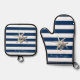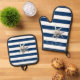 Adorable Starfish ,Navy Blue Stripes-Personalised Oven Mitt & Pot Holder Set