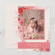 Adorable Sweet Pastel Coral Floral Illustration Baptism Invitation Card Design with Framed Baby Photo.