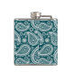 Adorable Teal Blue and White Paisley-Flamingos Hip Flask
