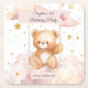 Complete your baby girl’s birthday table decor with this adorable teddy bear paper coaster! Featuring a sweet watercolor bear swinging through pink clouds and golden stars, this design includes a festive balloon and customisable name and message. With the joyful “Let’s Celebrate!” text, this coaster adds charm and coordination to your 1st birthday party theme. A perfect match to our full teddy bear birthday collection!