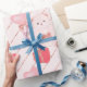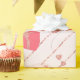 This Valentines Day Gift Wrap is sure to please your sweetheart with its adorable pattern. This design features a white background with pink glitter stripes. A pattern of pink teddy bears holding pink heart balloons with pretty faux glitter accents and red hearts wrapped with string complete this sweet Valentines Day wrapping paper style.