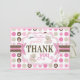 Sweet pink and brown paw print polka dots with a cuddly teddy bear with 3D-look bows and trims thank you card design.