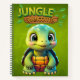 Personalise the back cover of this adorable "Jungle Welcome" notebook! Whimsical baby box turtle cartoon graphic animal character on a forest green background. This design is perfect for tortoise lovers, safari woodland nature wildlife fans, and anyone who enjoys cute, cosy zoo vibes.