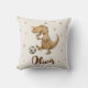 This cute personalised throw pillow features a cute dino figure kicking a ball and small hearts in the background. Perfect for the little soccer fan in your life! Customise with your kid's name for a truly unique and personalised decor.
