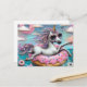 Adorable Unicorn floating on a Glazed Doughnut Postcard
