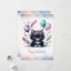 Adorable Watercolor Black Kitten Happy Birthday Holiday Card