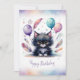Send birthday wishes with this absolutely charming watercolor kitten birthday card! Featuring an irresistibly cute black and white kitten with a sweet expression, surrounded by soft pastel balloons in purple, teal, and pink. Delicate feathers, gentle watercolor clouds, and lovely floral accents frame this enchanting illustration. The elegant "Happy Birthday" script in soft purple completes this heartwarming design. The dreamy pastel color palette and tender artwork create a warm, whimsical atmosphere perfect for birthday greetings. Ideal for animal lovers, cat enthusiasts, children's birthdays, nature lovers, or anyone who appreciates adorable watercolor art. The back of the card is blank for your personal handwritten message, making it perfect for heartfelt birthday wishes!