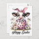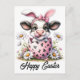 A funny adorable Easter cow hatched from a pink spotted egg and wearing bunny ears AI generated art