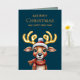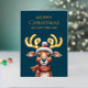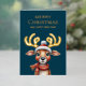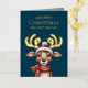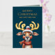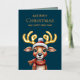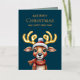 Adorable Watercolor Green Christmas Reindeer Gold Foil Holiday Card