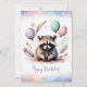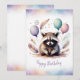 Adorable Watercolor Raccoon Happy Birthday Holiday Card