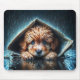 Adorable wet puppy under newspaper shelter mouse pad