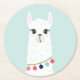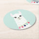 Adorable White Alpaca Round Paper Coaster