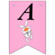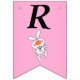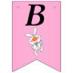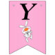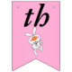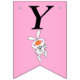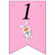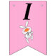 This flag shaped bunting Happy Birthday banner is a bright hot pink colour with an adorable white cartoon bunny with a big orange nose snapping his fingers. Customise the birthday year with the templates.